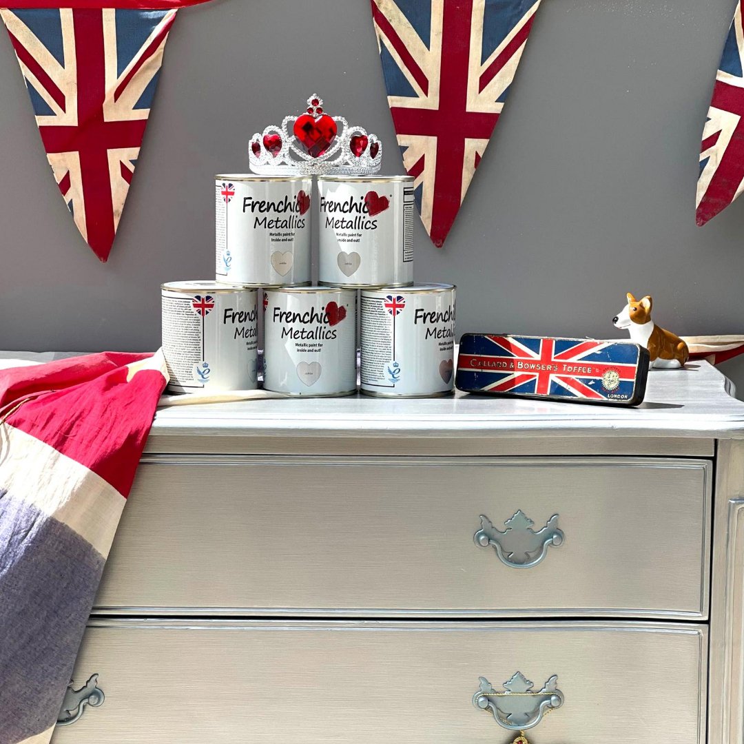 Add an air of luxury and elegance to your furniture, front door, kitchen, bathroom or just about anywhere! The Metallics range is a weatherproof, durable, easy to use paint with a fabulous metallic effect finish. Self-priming and self-sealing, it is suitable for a wide range of surfaces both inside and out! Water-based, with minimal VOC content plus UKCA and EN71-3 certification meaning it is safe to use on children’s toys. More colours to follow!